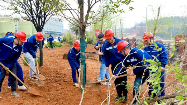 銅仁(上市主體)產(chǎn)業(yè)基地工會開展了植樹節(jié)相關(guān)活動,工會領(lǐng)導班子號召廣大員工參與到愛護園區(qū)環(huán)境的行動中,來自原料廠區(qū)、材料廠區(qū)、環(huán)保廠區(qū)、職能部門的員工代表參加了植樹活動,為園區(qū)增添新綠。