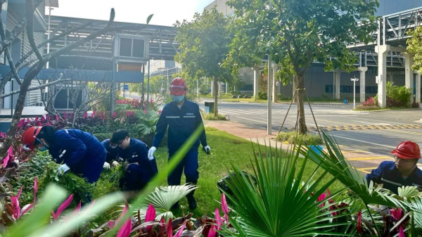 欽州產(chǎn)業(yè)基地200名員工齊聚基地辦公樓旁,大家按部門分成小組,在小組長的帶領(lǐng)下,開展了植樹及為綠植澆水活動,倡議全員爭當綠色低碳踐行者。