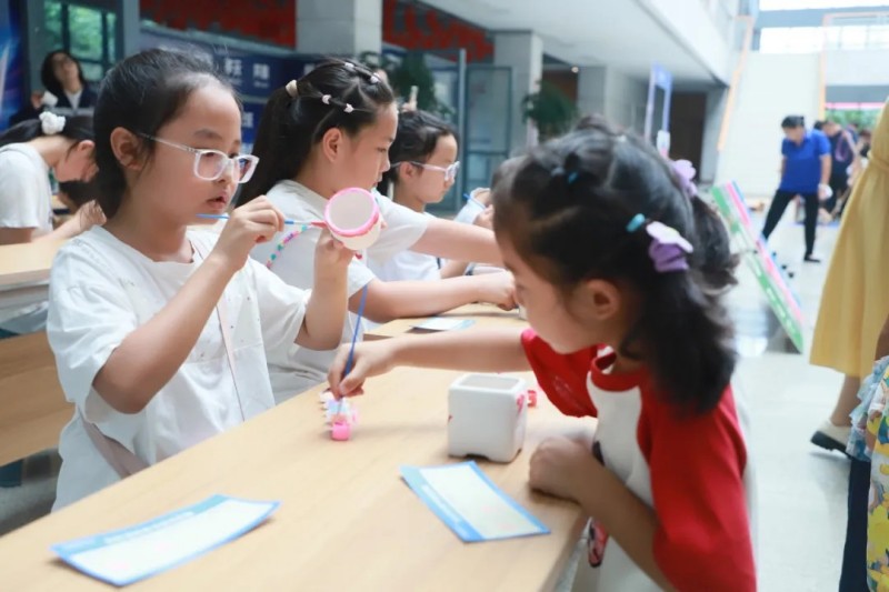 在寧鄉(xiāng)產(chǎn)業(yè)基地的“石膏娃娃”彩繪區(qū),孩子們用五彩顏料勾勒出心中的綠色能源夢(mèng);“手腳并用”挑戰(zhàn)賽鍛煉協(xié)調(diào)能力,“公雞下蛋”比拼趣味十足,加油歡呼聲響徹現(xiàn)場。