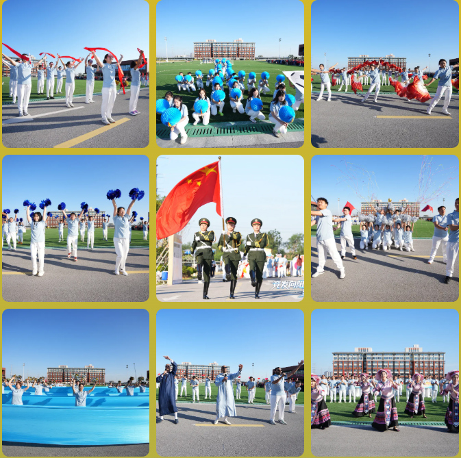 晨曦初照,開幕式現(xiàn)場人聲鼎沸,熱鬧非凡,8支參賽隊伍邁著整齊的步伐,跟隨國旗、司旗、運動會會旗入場,帶來各具特色的精彩表演。彩帶飄揚、花團簇簇,啦啦操與大合唱、彩扇舞與錦緞陣,形式各樣的開幕式表演將民族的、也將世界的文化凝結(jié)匯聚,展現(xiàn)出全球中偉人拼搏向上、自立自強的精神面貌,詮釋了“責(zé)任創(chuàng)新多元共贏”的精神內(nèi)核。