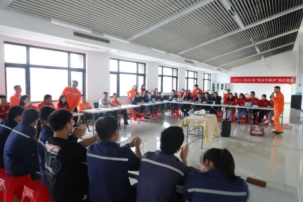 競賽分為必答題、搶答題、風險題3個環(huán)節(jié),競賽題型多樣,內(nèi)容豐富,涵蓋《中偉員工安全手冊》《安全生產(chǎn)法》《危險化學品安全管理條例》《特種設備安全法》《安全色》《環(huán)保法》及公司安全、環(huán)保等管理制度,從各個部門、車間中脫穎而出的6支代表隊上演了一場精彩對決。
